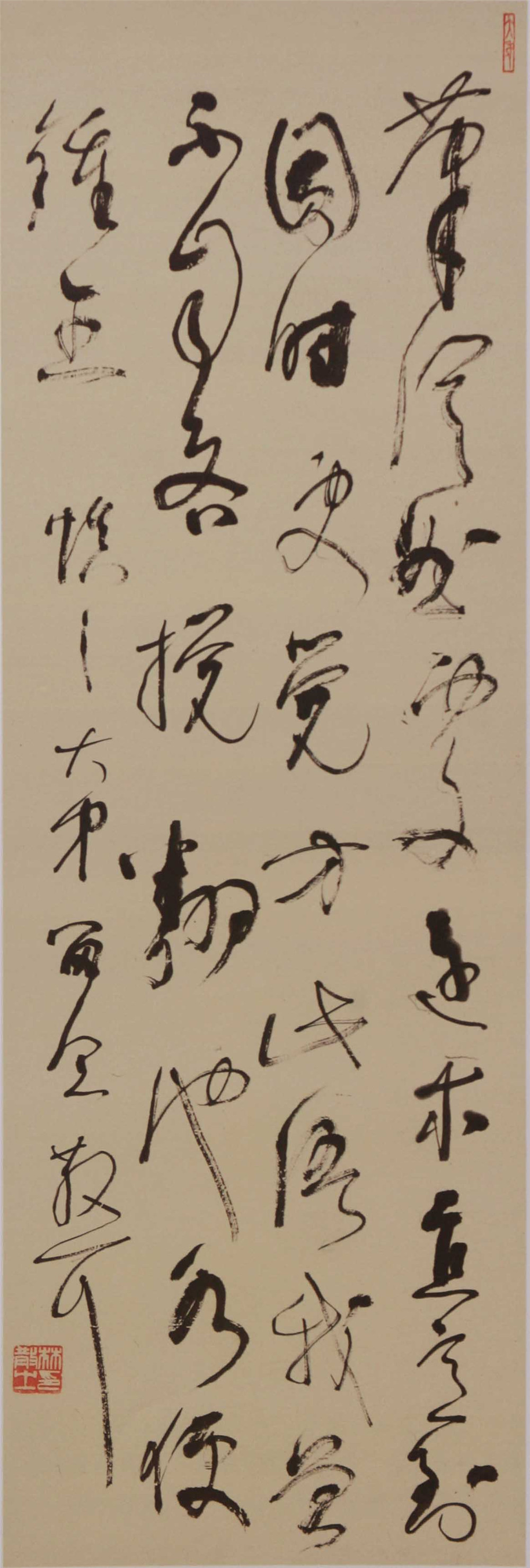 这里可以引出一个很有意思的命题。书画的关系,历来都是书法给绘画以恩惠,以影响,现在在这里我们看到一个非常有意思、非常重要的现象,绘画反过来影响书法,带动了现代的草书。如果仅仅是影响,还不是那么重要,关键是影响到草书以后,创造出的这部分作品,回到书法史来看,它们达到了很高的水准,具有十分重要的意义和地位。