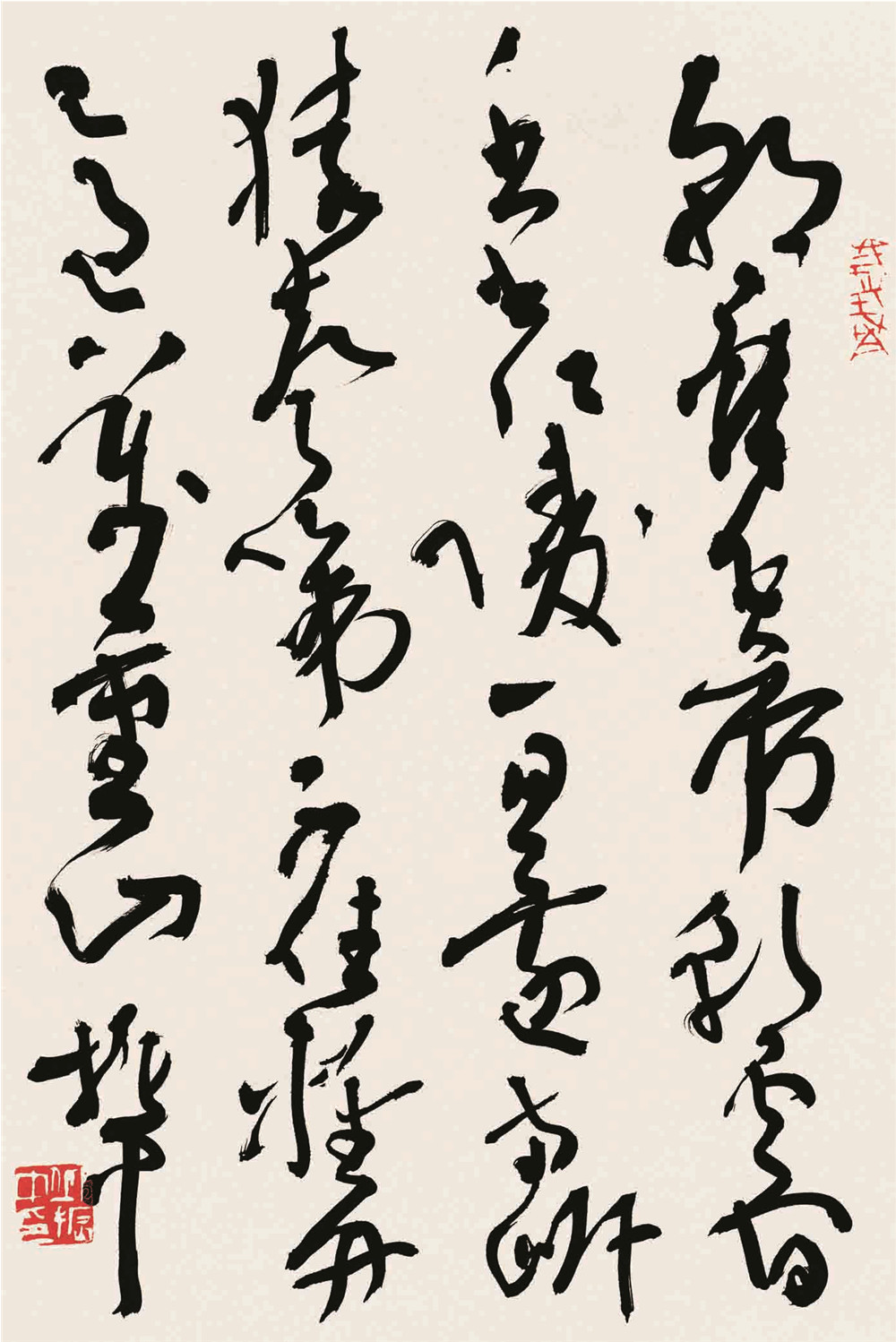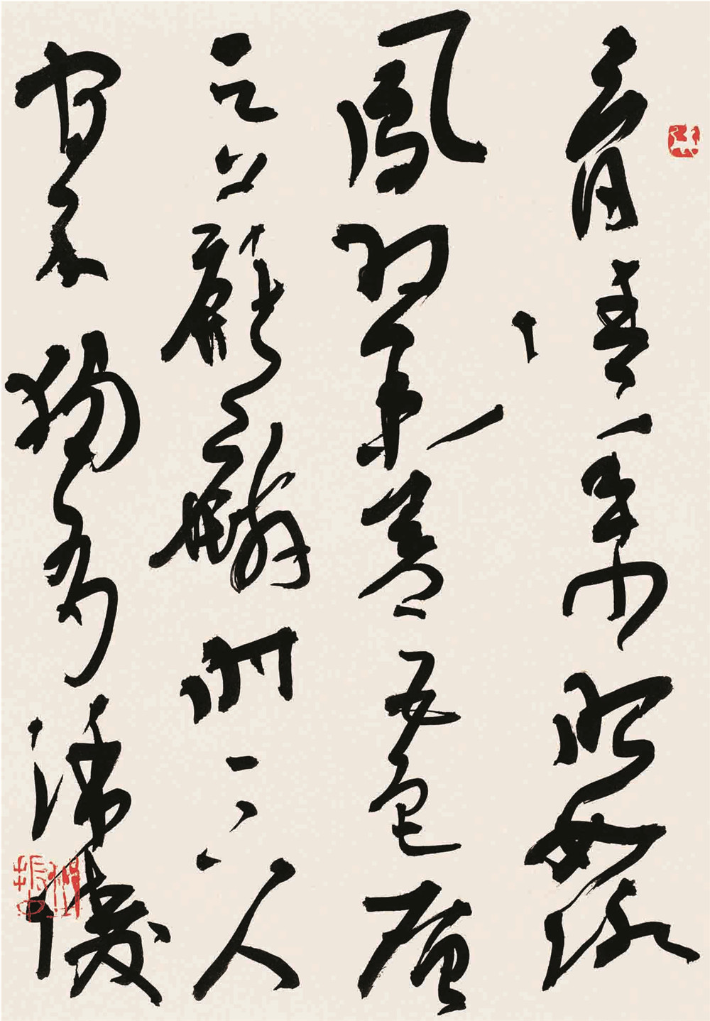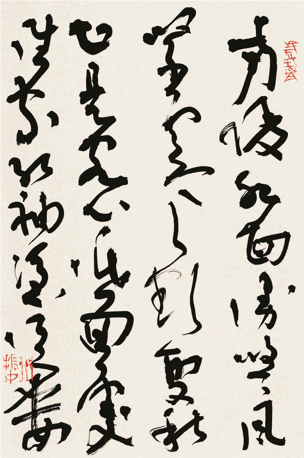 最近几年,我对唐代狂草进行了比较细致的阅读和思考,在草书的构成细节上不断有所发现。其次,在创作狂草的感觉方式、书写草书对熟练程度的要求、技巧的把握与创作的关系、草书结构上的自由变化与其他书体的区别等问题上有了进一步的认识。
